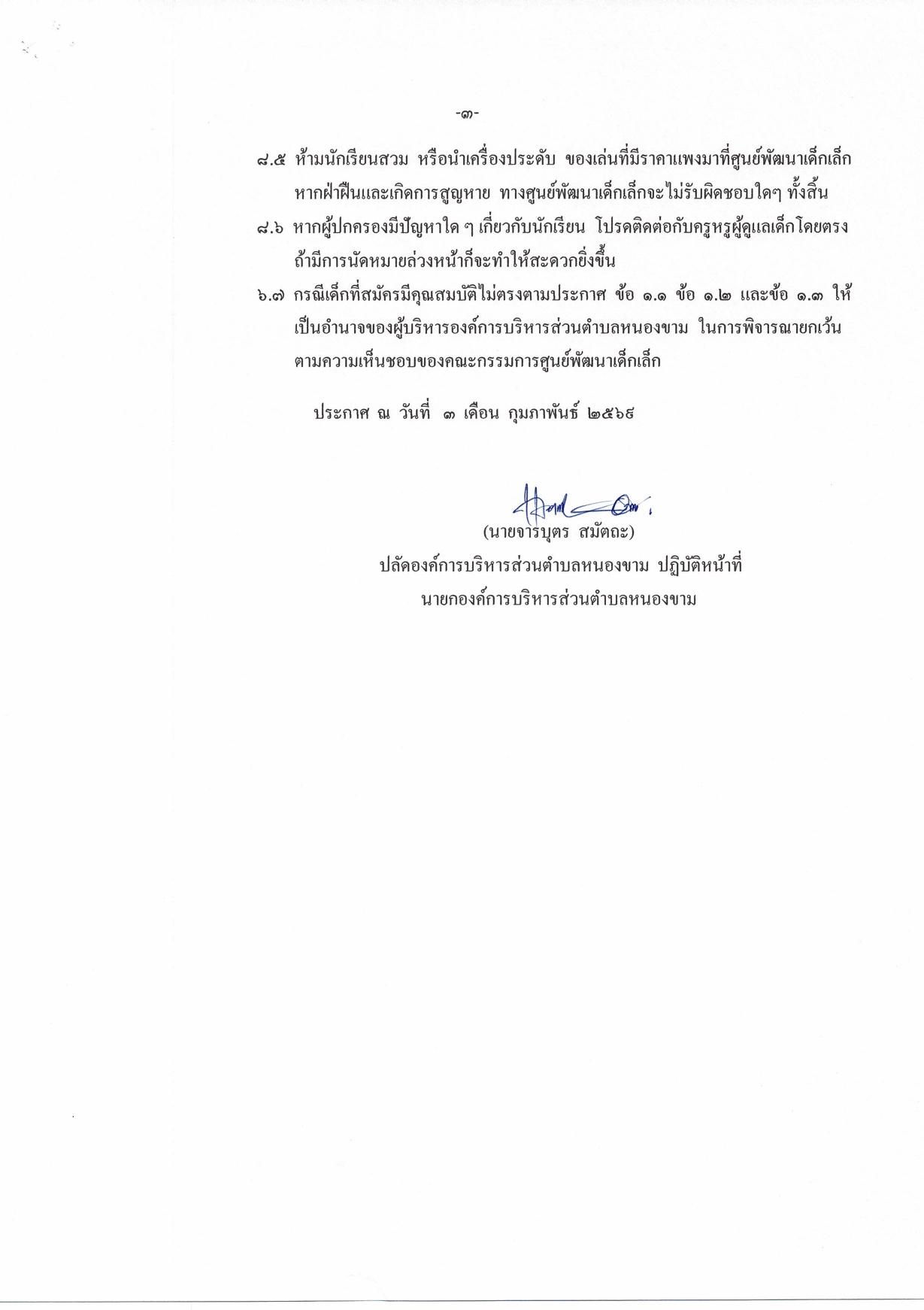 ประกาสรับสมัครนักเรียนเพื่อเข้าเรียนศูน์พัฒนาเด็กเล็กสังกัด อบต.หนองขาม 2569